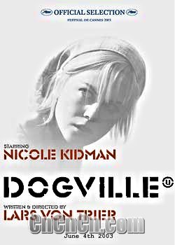 天才导演拉斯.冯.特里尔 Lars Von Trier作为dogma95运动的发起人之一,早已是名满全球。《欧洲特快车》、《破浪》、《白痴》、《黑暗中的舞者》接连几部影片的成功,打造了一个当代电影的神话人物,特别是在私人影像可能性空前加强的今天,doama95的十条戒律已经成为DV青年的行动准则。严格按照doama95准则拍摄的作品《白痴》,影片内容之惊世骇俗,影象冲击力之强非文字所能记载。电影音乐更是有纽约地下音乐教主sonic youth的友情支持,《白痴》之先锋性可以一斑。《破浪》一片,大胆纵深探讨人性、宗教、宿命等哲学命题,妮可.基德曼即是被该片深深吸引,此次《狗镇》终于如愿走进特里尔的影象世界。《黑暗中的舞者》此片想必已是深入人心,就连奥斯卡都不得不垂青这位当代影坛奇才.
